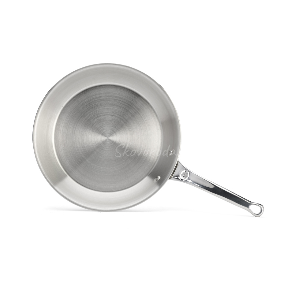 Для достижения оптимальных результатов при использовании посуды из нержавеющей стали для жарки рекомендуется предварительно разогревать ее пустой на средне-слабом огне, не превышая 2/3 от ее общей мощности. Чтобы проверить правильную температуру, можно бросить в посуду капли воды: если они лопнут, продолжайте нагревать, но когда капли начнут скатываться, это будет означать, что достигнута идеальная температура (Эффект Лейденфроста). Учитывая способность нержавеющей стали сохранять тепло, крайне важно избегать перегрева, образования точек перегрева или деформации.