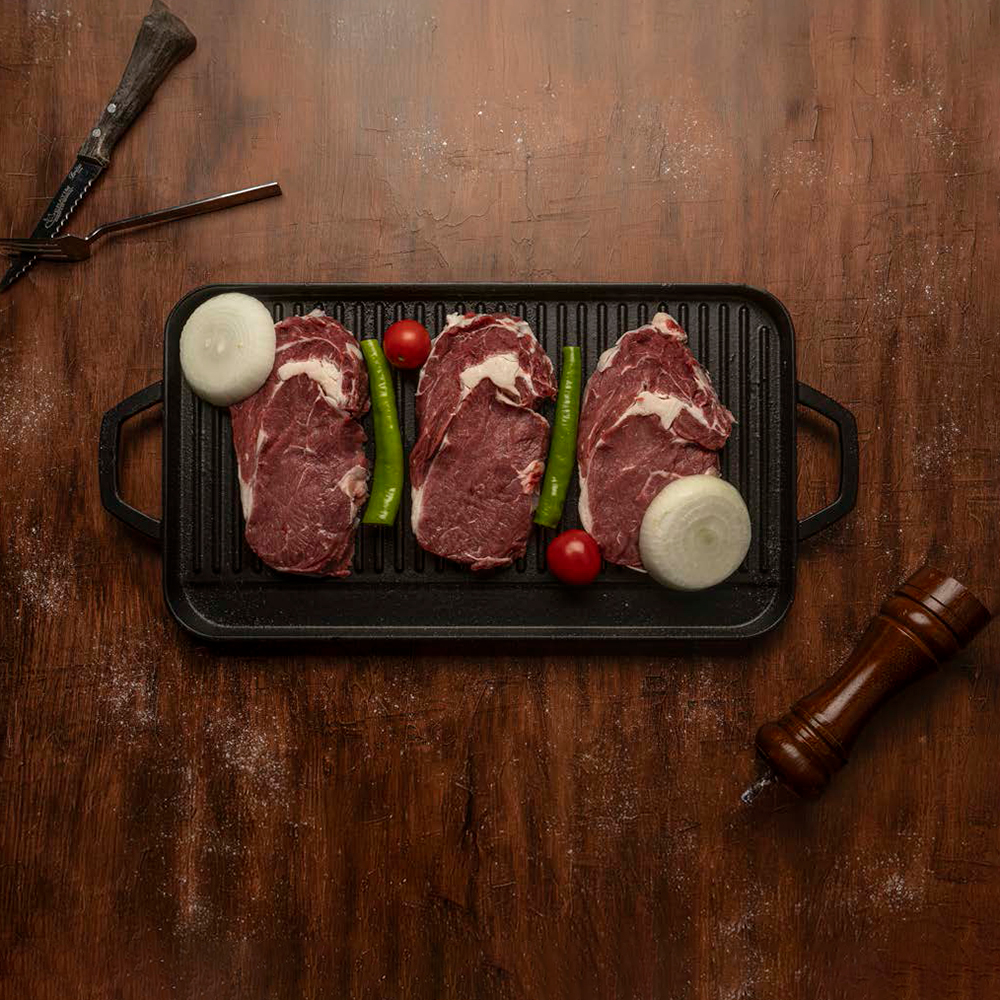 На это есть две причины. Во-первых, мясо не прилипает к сковороде, а равномерно прожаривается благодаря высокой температуре. В результате вкус, сок и все пищевые ценности остаются внутри мяса. На поверхности мяса образуется тонкий плотный слой, то есть оно обжаривается. Таким образом, хоть мясо и пристает к поверхности сковороды в первые несколько минут, оно затем отстает (как только испаряется влага на его поверхности). Во-вторых, мясо только частично соприкасается с поверхностью сковороды благодаря каналам гриль на дне сковороды. Таким образом, мясо намного легче отходит от поверхности сковороды и на нем остается приятный рисунок гриль.